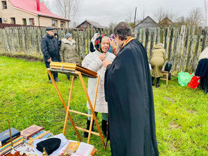 Клирик Вознесенского храма иеромонах Серафим (Бикинев) отслужил праздничный молебен святому великомученику Димитрию Солунскому и литию о павших воинах в деревне Богунино.