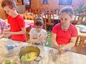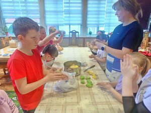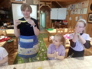 В субботу воспитанники собрались для совместного творческого мероприятия. Выпекание жаворонков стало доброй традицией в нашей школе. Перед началом кулинарного процесса педагог Ирина Вячеславовна провела урок, посвящённый подвигу 40 Севастийских мучеников. В память об этом событии христиане готовят жаворонков и угощают ими родных и близких. Постное тесто оказалось очень вкусным. Выпечка предназначалась для именинников, так как на следующий день дети собирались поздравить настоятеля отца Евгения, а также священника Валерия, служащую собора Галину Валентиновну и двоих Вячеславов с Днём их небесных покровителей.