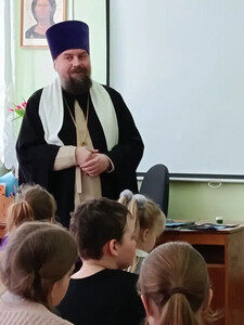 7 апреля, в День Благовещения Пресвятой Богородицы, состоялась первая встреча настоятеля Смоленского храма, протоиерея Андрея Голубева, с учащимися Ильинской школы. Для отца Андрея это был первый опыт выступления в местной школе, так как он недавно приступил к своим обязанностям на данном приходе. После внезапной кончины предыдущего настоятеля, отца Игоря Остаева, накануне Нового года, приход, включая школу, детский сад и психинтернат, остался без духовного наставника. Теперь отцу Андрею предстоит взять на себя ответственность за приход и стать его новым духовным отцом. На фотографиях видно, что дети с радостью встретили батюшку, который пришёл к ним с беседой о Благовещении Пресвятой Богородицы. В ходе беседы дети узнали об истории спасения человечества, начиная с радостного приветствия Архангела Гавриила к Деве Марии, по словам которого от Неё должен был родиться Спаситель Мира. Дети слушали батюшку с большим интересом и вниманием, унося в своих сердцах надежду на вечную жизнь.